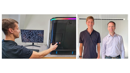 Caption: Next version of scanner installed and tested by Krzysztof Krawczyk, Project Manager (left). Alexander Carr, life science consultant at TTP plc delivered and supported the installation, here with Lumito's CTO Andreas Johansson (right).