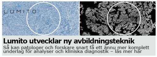 Lumito utvecklar ny avbildningsteknik, läs mer om hur patologer och forskare snart kan få ett ännu mer komplett underlag för analyser och klinisk diagnostik genom att följa länken till annonsen ”Innovativ digital avbildningsteknik möter ökat antal biopsier”, https://lakartidningen.se.