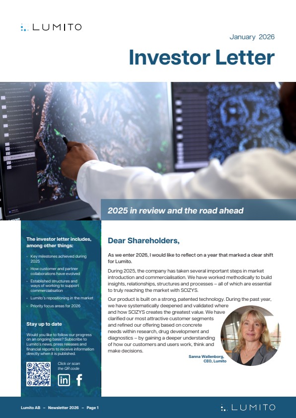 Lumito AB (publ) (“Lumito” or “the Company”) today announces the publication of its latest investor letter, which summarises the development in 2025 and also presents the Company’s priorities for 2026.