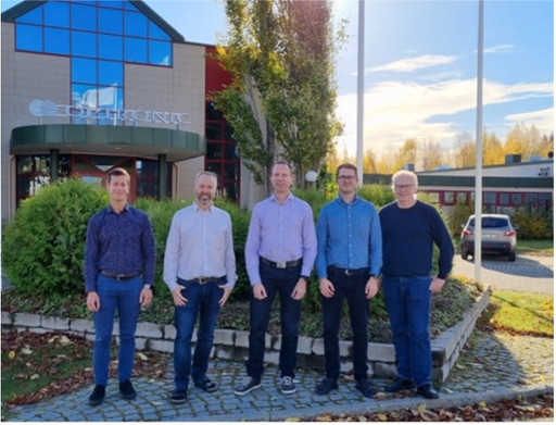 Caption above: Lumito's scanner has been assembled and tested by the Swedish production partner Optronic Partner pr under the supervision of Lumito's R&D team. From left: Krzysztof Krawczyk, Project Manager Lumito, Markus Bylesjö, Development Manager Optronic, Andreas Johansson, Technical Manager Lumito, Charles Lundberg, Optronic Project Manager, Magnus Helgstrand, Senior Software Engineer