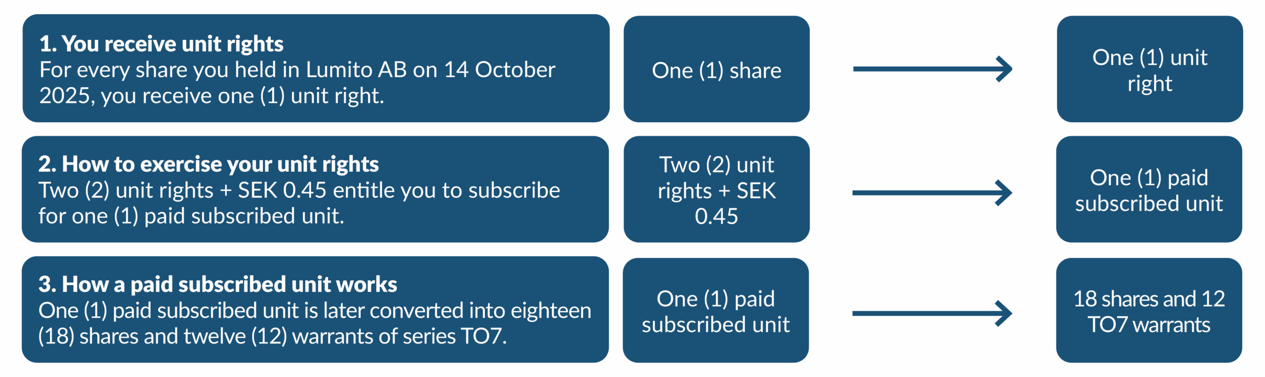 Lumito can also receive additional capital in June 2026 in connection with the exercise of warrants issued in connection with the rights issue, which is intended to be used for the following activities: