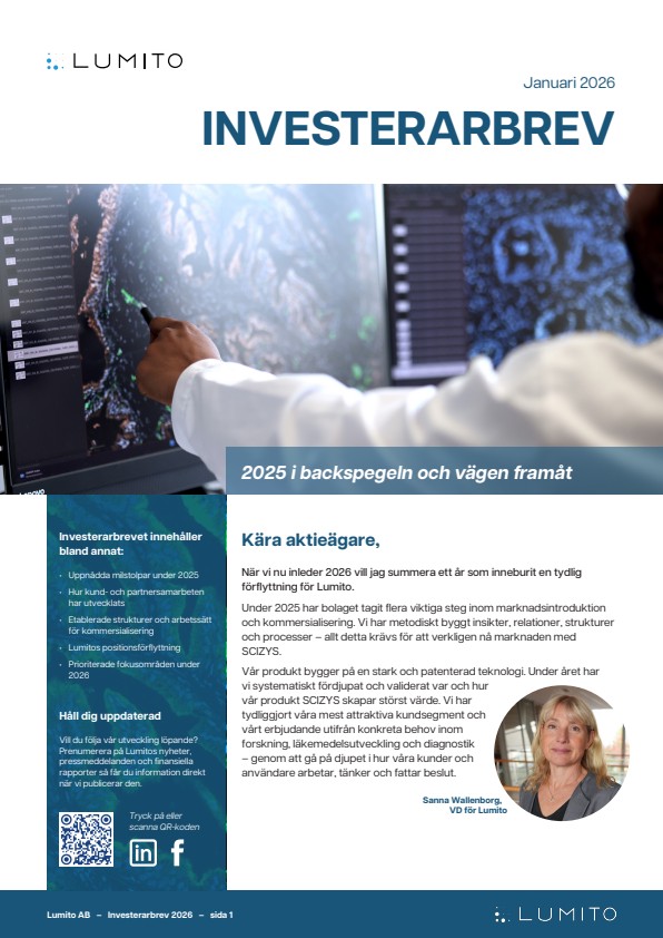 Lumito AB (publ) (“Lumito” eller “Bolaget”) meddelar idag att bolaget offentliggör sitt senaste investerarbrev, vilket summerar utvecklingen under 2025 och samtidigt presenterar Bolagets prioriteringar inför 2026.